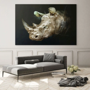 Cuadro sobre vidrio - Impresiones sobre Vidrio - Representación artística de una cabeza de rinoceronte sobre un fondo oscuro. - 70x50cm - La verdadera fuerza - Decoración de pared moderna para salón y dormitorio ARTTOR