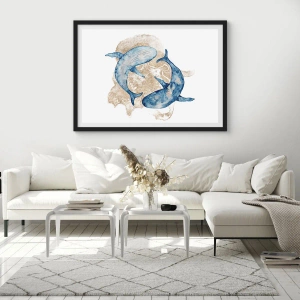Póster en marco negro - Una pintura abstracta de dos ballenas de aleta. - 50x70cm - ¿Amistad o amor? - Decoración de pared moderna para salón y dormitorio ARTTOR