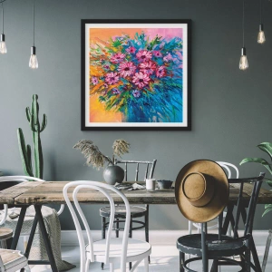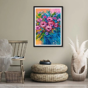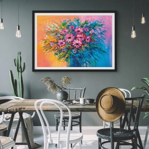 Póster en marco negro - Un ramo de flores de colores intensos sobre un fondo abstracto. - 50x70cm - La energía de la vida - Decoración de pared moderna para salón y dormitorio ARTTOR