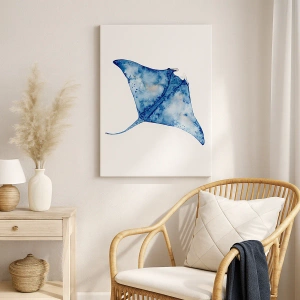 Arte mural - Vida en azul - Raya azul en estilo acuarela sobre fondo blanco