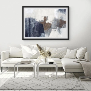 Póster en marco negro - Formas abstractas en tonos azules y marrones. - 70x50cm - Formas azules y marrones - Decoración de pared moderna para salón y dormitorio ARTTOR