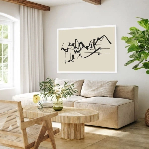 Póster - Dibujo abstracto de montañas en blanco y negro - 100x70cm - Tal vez sea un paisaje - Decoración de pared moderna para salón y dormitorio ARTTOR