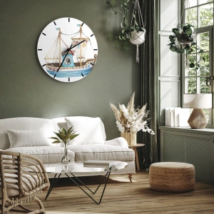 Reloj de pared - Reloj de vidrio - Velero infantil ilustrado con decoraciones náuticas - 30x30cm - A la aventura - Decoración de pared moderna para salón, cocina y dormitorio ARTTOR