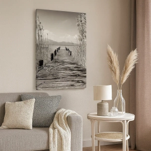 La pintura fue creada sobre un lienzo de 70 x 50 cm en formato horizontal por ARTTOR. Es la decoración perfecta para un salón, dormitorio u oficina, creando una atmósfera de tranquilidad y cercanía a la naturaleza. El estilo minimalista y los delicados detalles del embarcadero y la hierba circundante hacen que esta pintura sea perfecta para interiores de estilo natural o rústico.