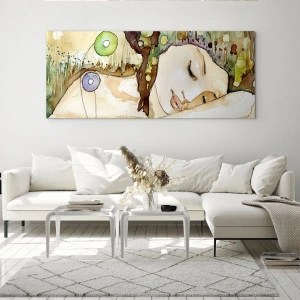 Cuadro sobre vidrio - Impresiones sobre Vidrio - Sueño esmeralda y violeta - 100x40 cm