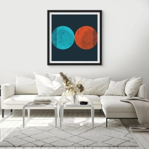 Póster en marco negro - Dos círculos: azul y naranja sobre un fondo azul marino. - 50x70cm - ¿Solo geometría? - Decoración de pared moderna para salón y dormitorio ARTTOR