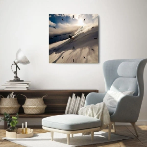 Reloj de pared - Reloj de vidrio - Un esquiador en una pendiente nevada bajo el sol. - 30x30cm - Reto de montaña asumido - Decoración de pared moderna para salón, cocina y dormitorio ARTTOR