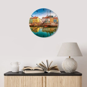 Reloj de pared - Reloj de vidrio - Casas coloridas en los canales de Copenhague - 30x30cm - Sobre el agua tan suave como un espejo - Decoración de pared moderna para salón y dormitorio ARTTOR