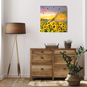 Reloj de pared - Reloj de vidrio - Un campo de girasoles bajo el resplandor del sol poniente. - 30x30cm - El propio sol ha bajado a la Tierra - Decoración de pared moderna para salón, cocina y dormitorio ARTTOR