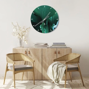 Reloj de pared - Reloj de vidrio - Hojas verdes en una composición minimalista. - 30x30cm - De cara a la luz - Decoración de pared moderna para salón y dormitorio ARTTOR