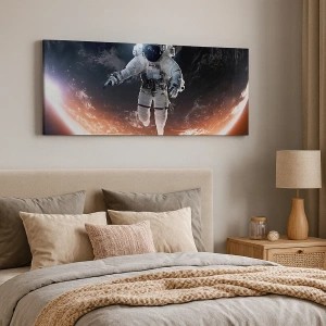 Cuadro sobre lienzo - Impresión de Imagen - Un astronauta flotando sobre una Tierra iluminada por el sol. - 50x70cm - ¿Puedo quedarme un rato más? - Decoración de pared moderna para salón y dormitorio ARTTOR