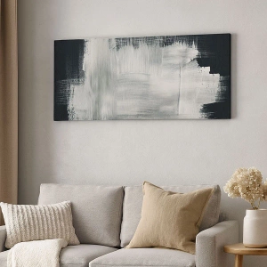 Cuadro sobre lienzo - Impresión de Imagen - Trazos abstractos blancos sobre un fondo oscuro - 50x70cm - Tejido vertical y horizontal - Decoración de pared moderna para salón y dormitorio ARTTOR