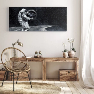 En la Vía Láctea es una pintura única de 70 x 50 cm que llama la atención con su diseño de un astronauta sosteniendo la Tierra contra el cielo estrellado. Este motivo futurista y surrealista encaja a la perfección en interiores modernos, dándoles un carácter único. El negro profundo del espacio contrasta con la luminosidad de la Tierra, creando una armonía entre el misterio del universo y la curiosidad humana.