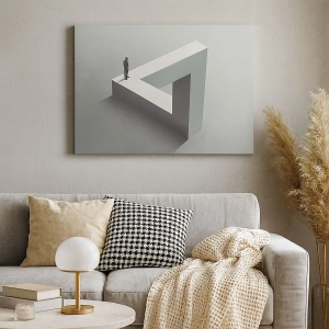 Cuadro sobre lienzo - Impresión de Imagen - Una figura parada sobre un triángulo de Penrose en tonos de gris. - 70x50cm - Y, sin embargo, es posible - Decoración de pared moderna para salón y dormitorio ARTTOR
