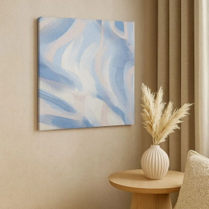 - Esta pintura presenta pinceladas abstractas en tonos azules y beige. Perfecta para interiores que buscan sutileza y armonía.