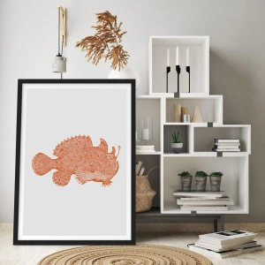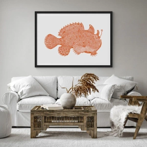 Póster en marco negro - Dibujo detallado de un pez de color cobre sobre un fondo blanco. - 70x50cm - Y sin embargo, un simple pez - Decoración de pared moderna para salón y dormitorio ARTTOR
