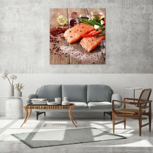 Cuadro sobre vidrio - Impresiones sobre Vidrio - Una aventura noruega en la cocina - 50x50 cm