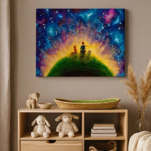 Cuadro sobre lienzo - Impresión de Imagen - Figuras en una colina verde rodeada de un cielo estrellado. - 50x70cm - Amor y amistad - lo único entero - Decoración de pared moderna para salón y dormitorio ARTTOR