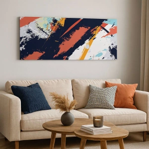 Cuadro sobre lienzo - Impresión de Imagen - Pinceladas abstractas en colores vibrantes - 50x70cm - Composición dinámica - Decoración de pared moderna para salón y dormitorio ARTTOR
