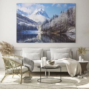Cuadro sobre vidrio - Impresiones sobre Vidrio - Paisaje invernal con montañas y un lago congelado. - 70x50cm - Guardia de nieve - Decoración de pared moderna para salón y dormitorio ARTTOR
