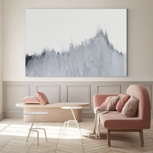 - Una pintura abstracta en tonos grises, que evoca una sutil notación. Una composición llena de misterio y elegancia, con una estética minimalista y moderna.