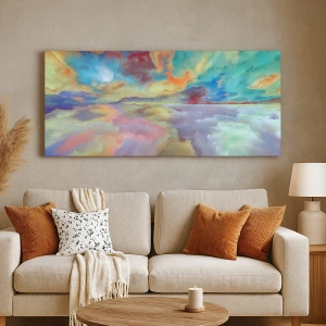 Cuadro sobre lienzo - Impresión de Imagen - Paisaje de nubes colorido en estilo abstracto. - 120x50cm - Dos cielos - Decoración de pared moderna para salón y dormitorio ARTTOR