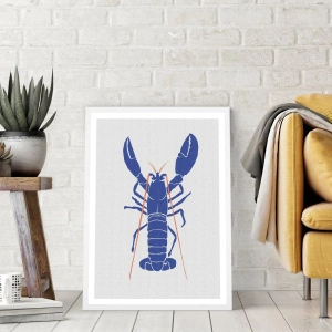 Póster en marco blanco - Langosta exquisita en azul marino - 50x70 cm
