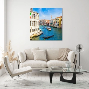 Cuadro sobre vidrio - Impresiones sobre Vidrio - Un canal en Venecia con góndolas y barcos en el agua. - 70x50cm - Tráfico único en el mundo - Decoración de pared moderna para salón y dormitorio ARTTOR