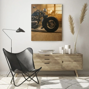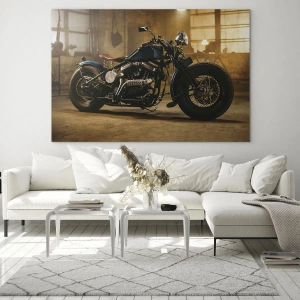 Cuadro sobre vidrio - Impresiones sobre Vidrio - Toma atmosférica de una motocicleta clásica en un garaje. - 70x50cm - Puedo hacer cualquier cosa - Decoración de pared moderna para salón y dormitorio ARTTOR