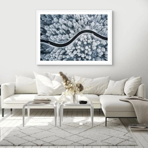 Póster en marco blanco - A través de un bosque invernal - 100x70 cm