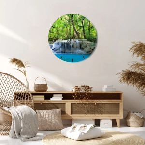 Reloj de pared - Reloj de vidrio - Una cascada entre árboles verdes con agua azul en un entorno natural. - 30x30cm - Ahogarse en turquesa y verde - Decoración de pared moderna para salón y dormitorio ARTTOR