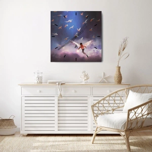 Reloj de pared - Reloj de vidrio - Una figura con alas de ángel flotando entre pájaros en el cielo. - 30x30cm - Imaginación y valor - Decoración de pared moderna para salón y dormitorio ARTTOR