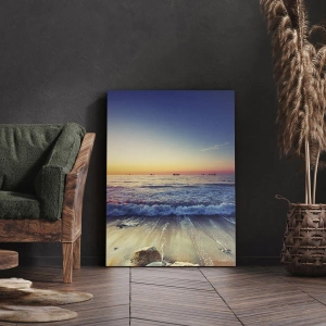Cuadro sobre lienzo - Impresión de Imagen - Puesta de sol sobre un mar tranquilo con olas - 50x70cm - ¿Y qué hay tras el horizonte? - Decoración de pared moderna para salón y dormitorio ARTTOR