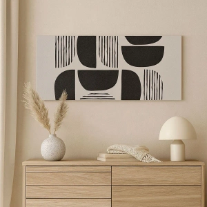 Cuadro sobre lienzo - Impresión de Imagen - Geometría con semicírculos y líneas en negro sobre fondo claro. - 50x70cm - Arreglos a medias - Decoración de pared moderna para salón y dormitorio ARTTOR