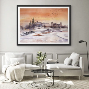 Póster en marco negro - Puesta de sol sobre el castillo en un paisaje invernal - 70x50cm - Atardecer real - Decoración de pared moderna para salón y dormitorio ARTTOR