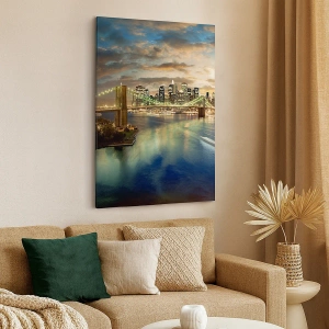 Cuadro sobre lienzo - Impresión de Imagen - Un atardecer iluminado sobre Manhattan - 100x40 cm