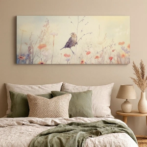 Cuadro sobre lienzo - Impresión de Imagen - Retrato de pájaro con prado de fondo - 100x40 cm