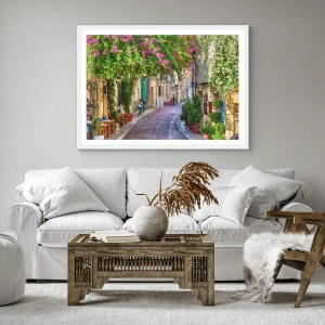 Póster en marco blanco - Un callejón floreciente - 100x70 cm