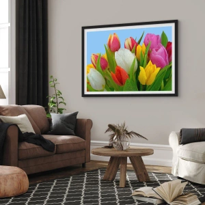 Póster en marco negro - Arco iris floral en gotas de rocío - 61x91 cm