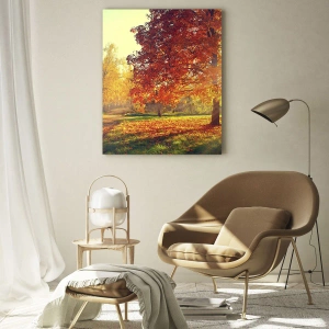 Cuadro sobre vidrio - Impresiones sobre Vidrio - Parque otoñal iluminado por la luz del sol - 160x50cm - El rojo es hermoso - Decoración de pared moderna para salón y dormitorio ARTTOR