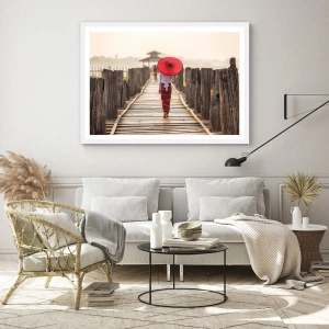 Póster en marco blanco - En un viejo puente - 91x61 cm