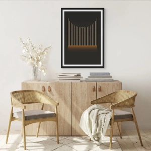 - Este póster presenta una composición geométrica de líneas verticales sobre un fondo oscuro. Su diseño minimalista y sus detalles dorados aportan elegancia y armonía a cualquier interior. Perfecto para espacios modernos donde la sutileza y la elegancia ...