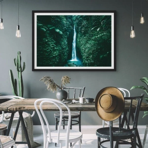 Póster en marco negro - Una cascada rodeada de densa vegetación tropical. - 70x50cm - Balneario tropical - Decoración de pared moderna para salón y dormitorio ARTTOR