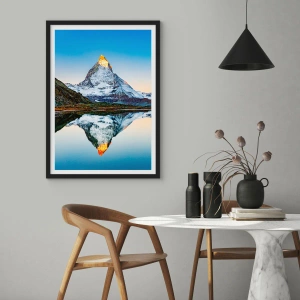 Póster en marco negro - Una montaña con un pico nevado reflejado en un lago. - 50x70cm - Dos mundos - Decoración de pared moderna para salón y dormitorio ARTTOR