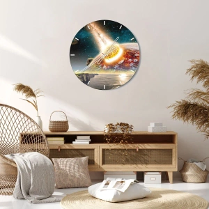 Reloj de pared - Reloj de vidrio - Colisión de un asteroide con la Tierra en el fondo cósmico - 30x30cm - Drama cósmico - Decoración de pared moderna para salón, cocina y dormitorio ARTTOR