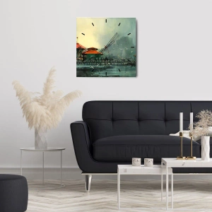 Reloj de pared - Reloj de vidrio - Un día soleado en el puerto - 40x40 cm