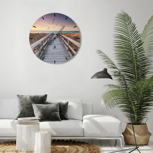 Reloj de pared - Reloj de vidrio - Muelle de madera que conduce a la playa al atardecer - 30x30cm - Camino a lo desconocido - Decoración de pared moderna para salón y dormitorio ARTTOR