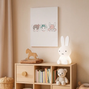 Cuadro sobre lienzo - Impresión de Imagen - Adorables conejitos con tocados en tonos pastel - 50x70cm - Reflexión, tristeza, alegría - Decoración de pared moderna para salón y dormitorio ARTTOR