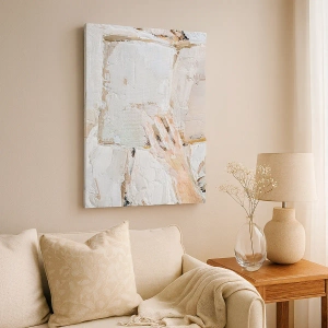 El lienzo se estira sobre un marco. Los lados y los bordes están impresos, creando una continuación de la imagen. El cuadro está listo para ser colgado en la pared. Cada producto tiene un enganche incorporado al marco y un kit de montaje (tornillo + taco).