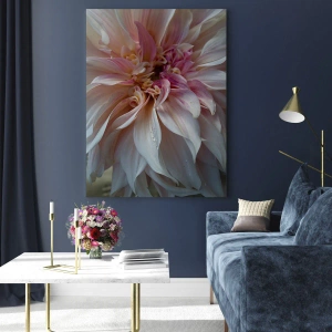Cuadro sobre vidrio - Impresiones sobre Vidrio - Primer plano de una flor rosa y crema con gotas de agua. - 50x70cm - Frescura floreciente - Decoración de pared moderna para salón y dormitorio ARTTOR